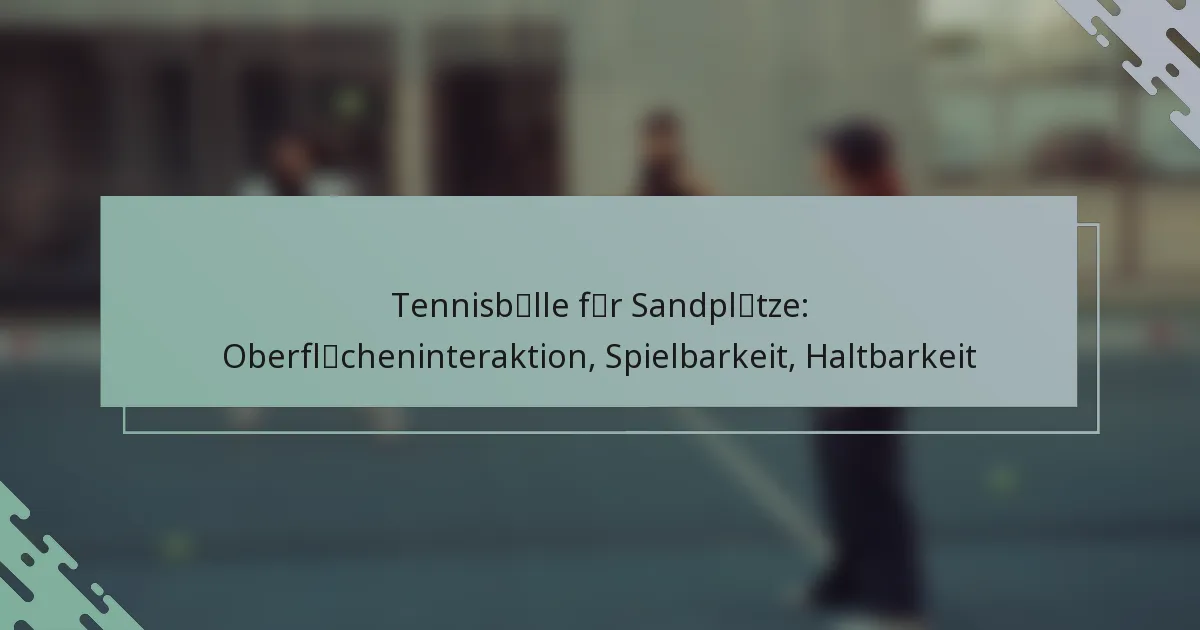 Die Spielbarkeit von Tennisbällen auf Sandplätzen ist durch einzigartige Absprung- und Geschwindigkeitsdynamiken gekennzeichnet, die das Gameplay erheblich beeinflussen. Spieler stellen oft fest, dass die weichere Oberfläche des Sands beeinflusst, wie der Ball interagiert, was zu einem langsameren Spiel mit höherem Absprung im Vergleich zu Hartplätzen führt.